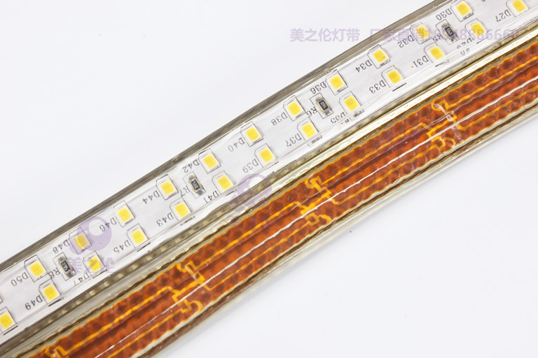 5、2835高压灯带又可称防水灯条,具有耗电小、产生热量小、无眩光耐冲击等特点。220V供电。